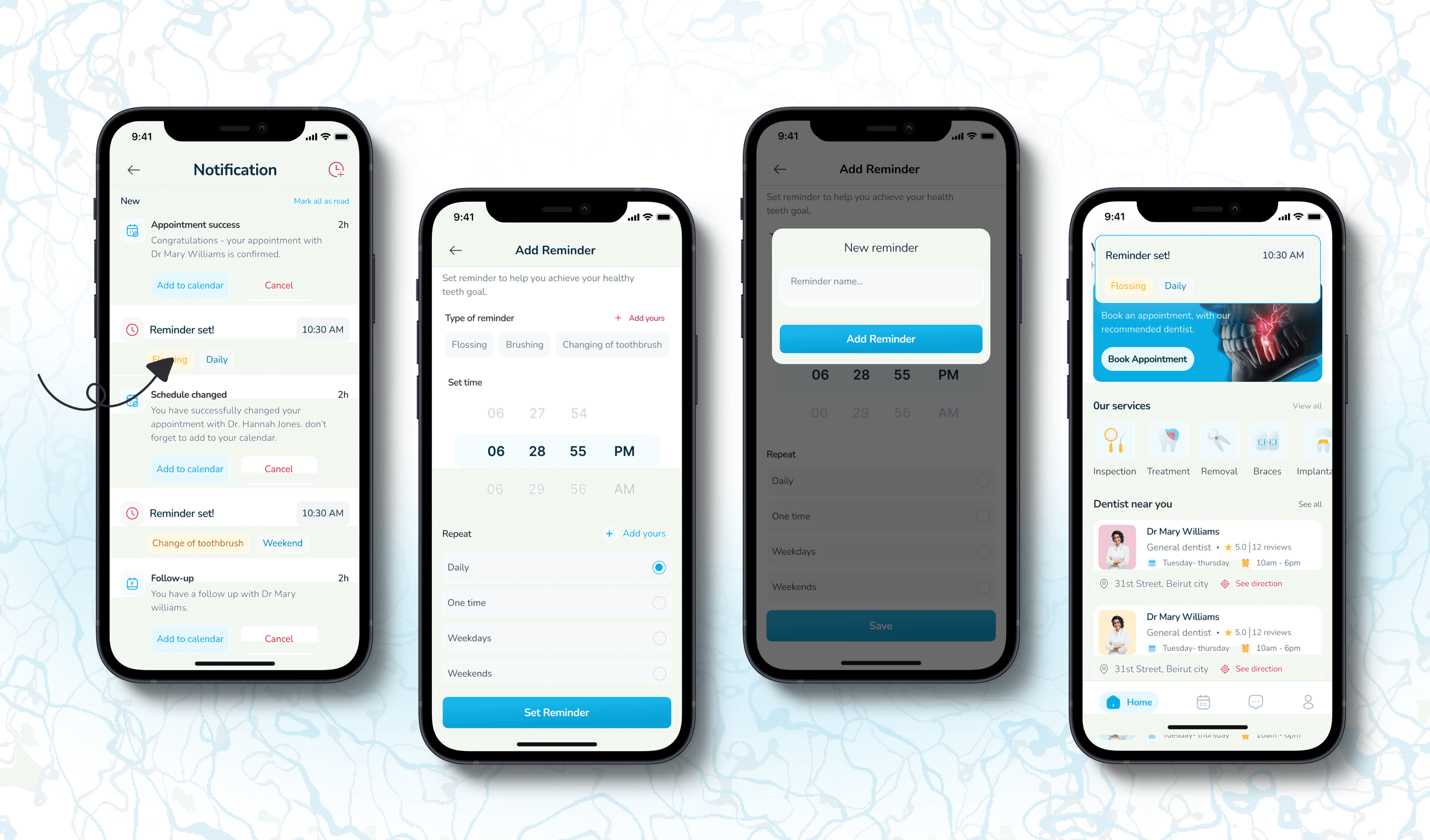 Designed an easy-to-use patient interface for scheduling appointments that syncs smoothly with the dentist's calendar